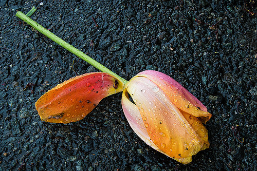 He had been collecting flowers of various kinds and had six or seven laying in a row. Daisies, tulips, roses, and a few she couldn’t name. He picked the tulip up and handed it to her, gently. “For you,” he said with a smile.